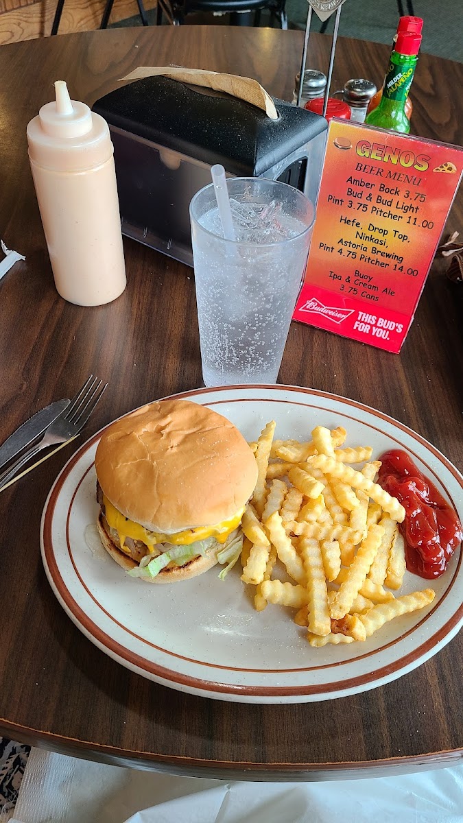 Geno's Pizza and Burgers sits quietly on Lief Erikson Drive, offering a welcoming reprieve from the brisk pace just beyond Astoria’s downtown edge. Walking in, you’re met with the easy hum of familiar chatter, the clinking of glasses, and the inviting warmth of a no-fuss neighborhood spot where folks know your name—or at least recognize your favorite order. The space feels unpretentious, perfect for lingering over a meal or grabbing a quick, satisfying bite between errands.